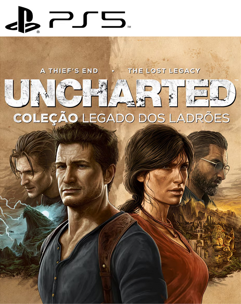 Uncharted Coleção Legado dos Ladrões reúne versões remasterizadas de Uncharted 4 A Thief’s End e Uncharted The Lost Legacy com gráficos aprimorados tempos de carregamento reduzidos e suporte aos recursos do controle DualSense A coleção acompanha as jornadas de Nathan Drake em sua última aventura e de Chloe Frazer em busca de uma relíquia indiana oferecendo sequências de ação cinematográficas exploração e combates intensos em diversos cenários ao redor do mundo
